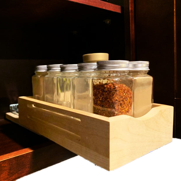 Natural Wood Finished, & Easy Slide Out Access. If you want to improve your cabinets and be organised, this can be a great option, making it easier to find all your Spices and Bottles. All hardware is included and ready to install with just a few simple screws(no need to remove shelves) you will get more space out of your kitchen cabinets now more than ever.