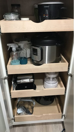 Our best-selling slide out wood drawers will help you organize your kitchen cabinets beautifully as well as economically.